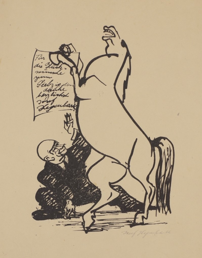 Galerie Für die Glückwünsche zum Siebzigsten dankt herzlichst Josef HegenbarthLithografie, 17,8x12,4 26,0x21,0 cm, Hegenbarth Josef