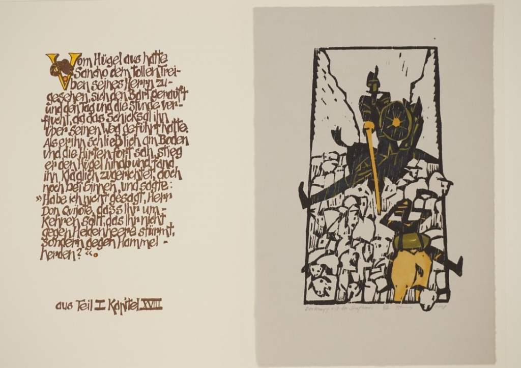 Galerie Bl.8 Der Kampf mit der SchafherdeMappe: Zaumseil P. "Don Quichote von der Mancha"Farbholzschnitt, 23,5x14,5 33,0x46,0 cm, 5/6 2018Zaumseil Peter