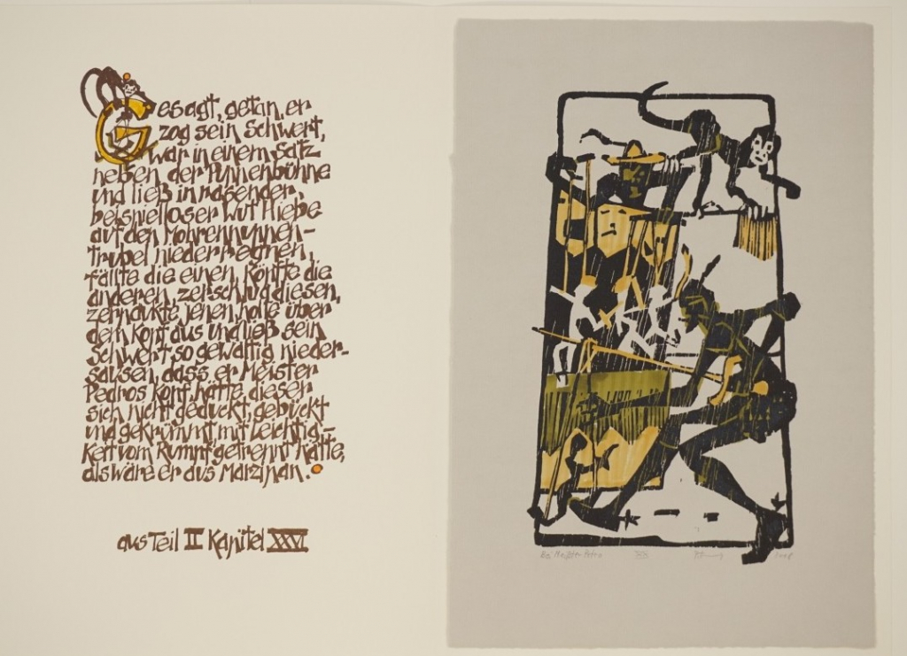 Galerie Bl.20 Bei Meißter PedroMappe: Zaumseil P. "Don Quichote von der Mancha"Farbholzschnitt, 24,0x14,0 33,0x46,0 cm, 5/6 2018Zaumseil Peter
