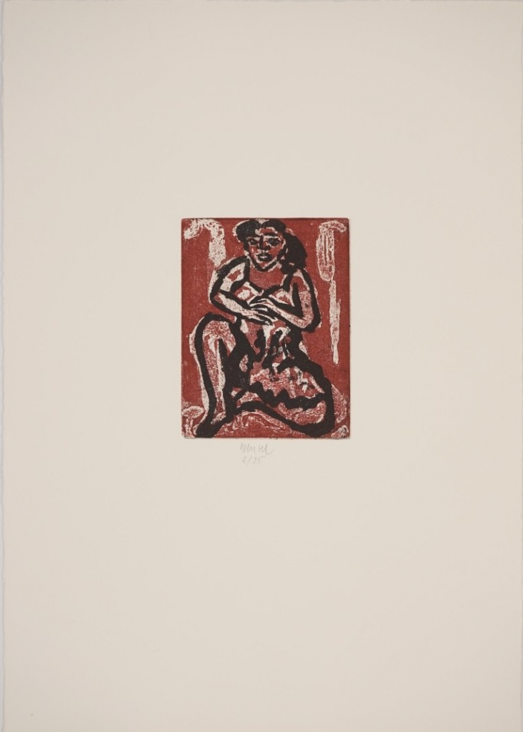 Galerie Bl. 14 Akt mit aufgestütztem ArmMappe: Wenzel J. "Die Brücke"Farbradierung, 25,0x30,7 54,0x38,2 cm, 2/35Wenzel Jürgen