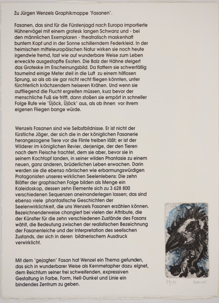 Galerie Textseite Mappe: B53 Wenzel J. "Der Fasan"Farbradierung, 15,0x6,0 53,5x39,5 cm, 29/30 1991-93Wenzel Jürgen
