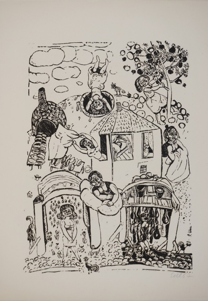 Galerie Gebrüder Grimm, Frau HolleMappe: Kabinettpresse 7.Druck "Märchen"Holzschnitt, 38,5x28,5 50,2x37,7 cm, 36/85 1967Sell Lothar