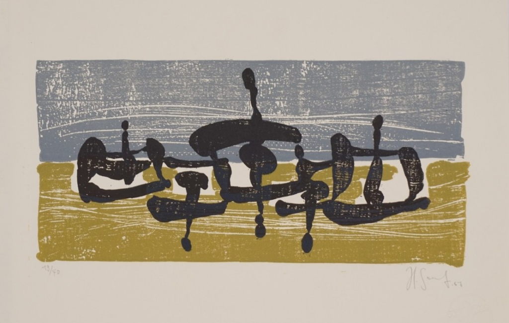 Galerie o.T.Mappe: Erfurter Ateliergemeinschaft 1967 "Kontakte"Farbholzschnitt, 11,7x24,5 21,0x29,4 cm, 19/40 1967Senf Helmut