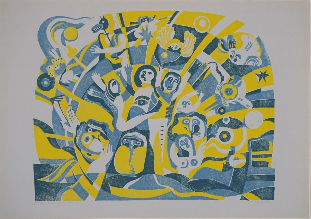 Galerie Jugend als SonneMappe: Grafik 76 zum IX. Parteitag SEDFarblinolschnitt, 29,7x37,5 48,0x34,0 cm, 41/125 1976Borisch Helga
