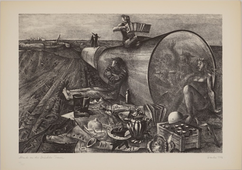 Galerie Abends an der Drushba-TrasseMappe: Grafik 76 zum IX. Parteitag SEDLithografie, 28,0x40,7 48,0x34,0 cm, 41/125 1976Franke Erich