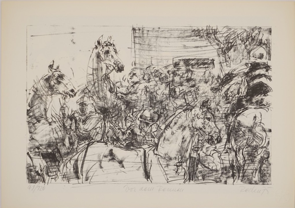 Galerie Vor dem RennenMappe: Grafik 76 zum IX. Parteitag SEDLithografie, 27,0x40,5 34,0x48,0 cm, 41/125 1976Rechn Günther
