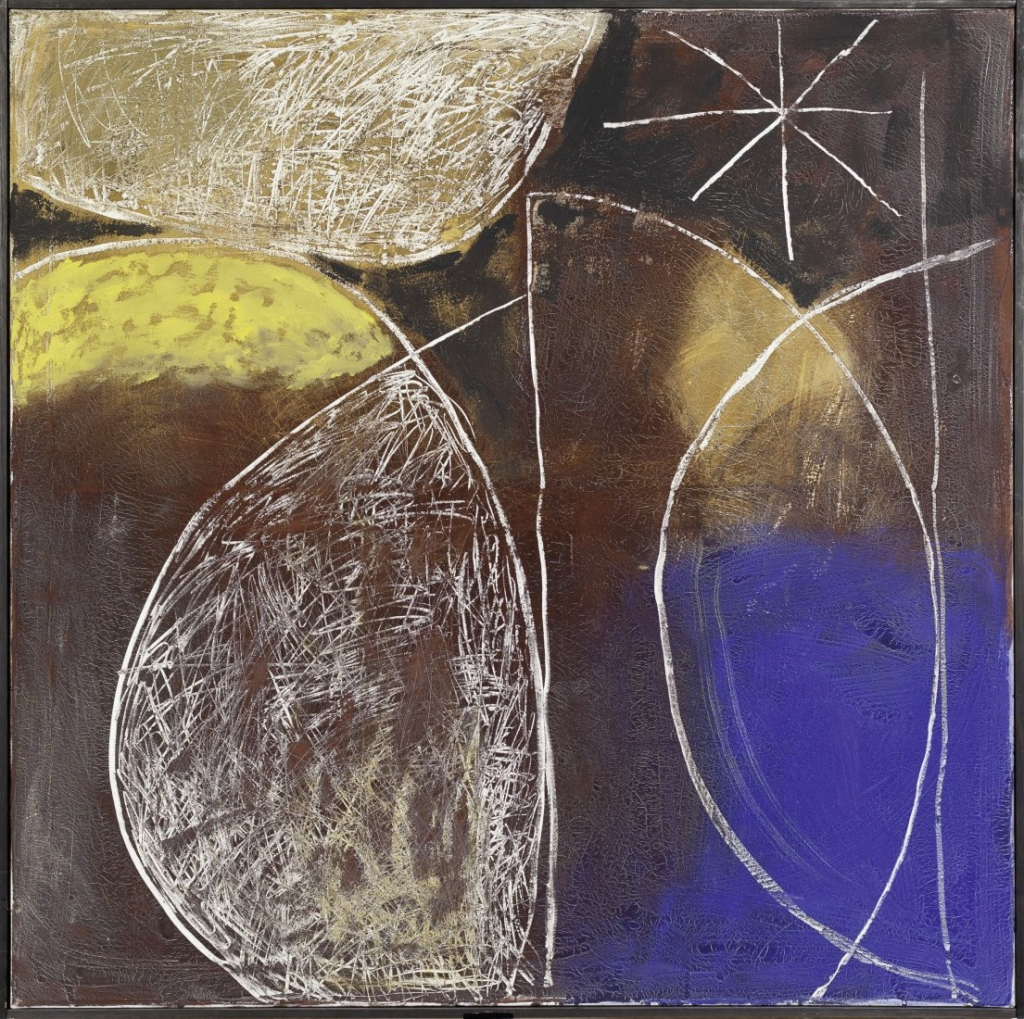 Öl/Sand auf Leinwand z.T. gekratzt