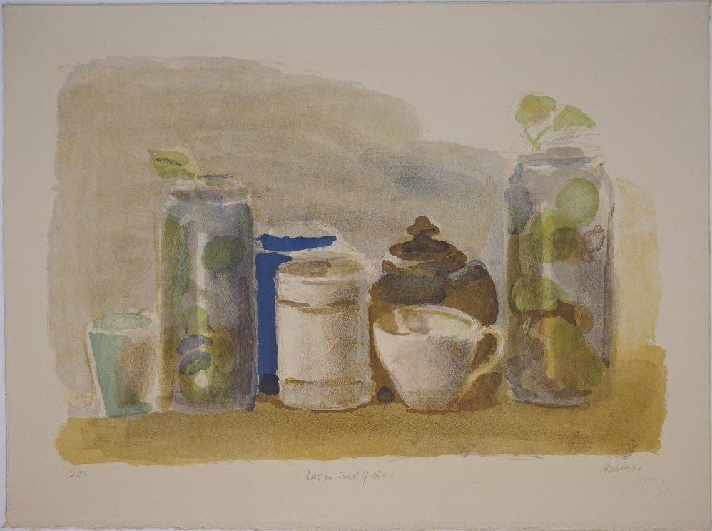 Galerie Tassen und GläserMappe: Farbklänge Nr.1 "Meisterlithographien Berliner Künstler"Farblithografie, 42,5x64,0 72,5x54,0 cm, 6/80 1991Metzkes Harald