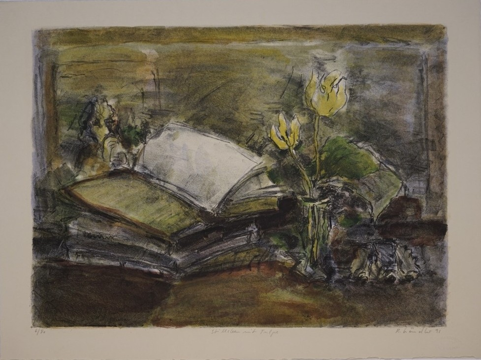 Galerie Stilleben mit TulpeMappe: Farbklänge Nr.1 "Meisterlithographien Berliner Künstler"Farblithografie, 45,5x62,5 72,5x54,0 cm, 6/80 1991Händler Rolf