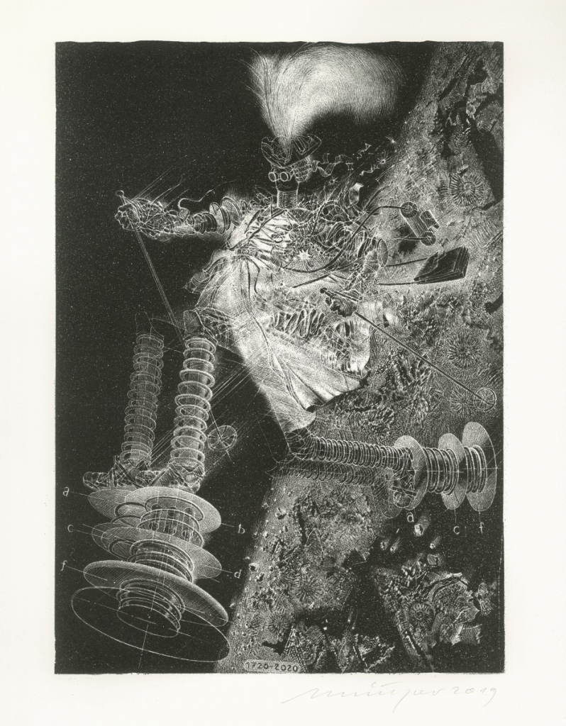 Galerie Sprung aus dem EignerMappe: A. + G. Lichtenstein Stiftung "Ich gestehe, diese Dinge klingen seltsam" zu MünchhausenSchablithografie, 32,0x22,5 53,7x39,0 cm, 15/15 2019Münzner Rolf
