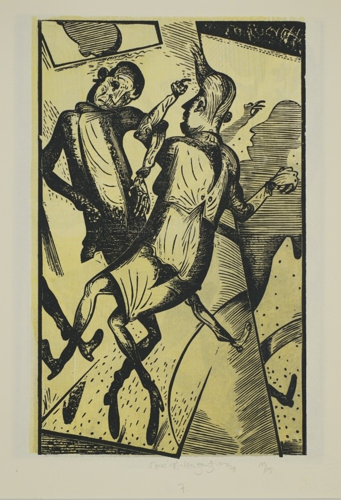 Galerie Bl.7 "Tanz' 18"Mappe: Hirsch K.-G. Edition Zwi 2019 "zugefügt"Farbholzschnitt, 30,2x18,8 34,0x24,0 cm, 11/15 2018Hirsch Karl-Georg