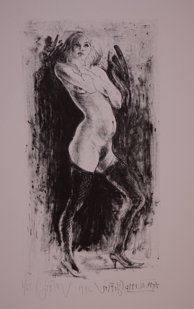 Galerie o.T. stehender weiblicher Akt mit StrümpfenLithografie, 50,0x24,5 60,5x40,0 cm, 6/25 1992Gröszer Clemens