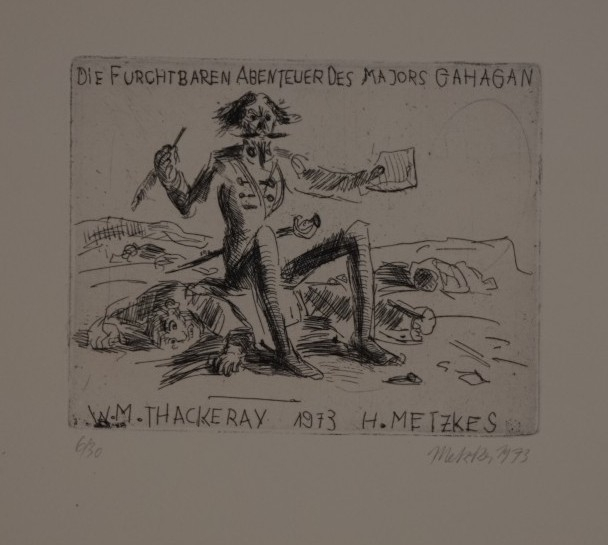 Galerie Bl. 1 Die furchtbaren Abenteuer des Majors GAHAGANMappe: Metzkes H. "Die furchtbaren Abenteuer des Majors GAHAGAN"Radierung, 13,0x16,2 24,2x36,8 cm, 6/30 1973Metzkes Harald