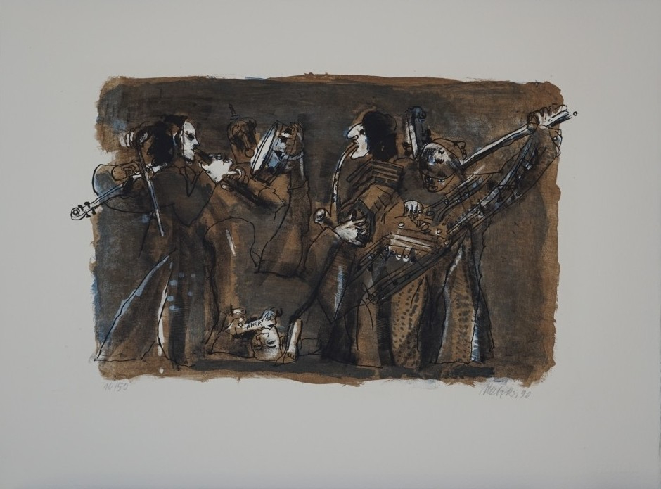 Galerie Bl.8 Das StändchenMappe: Metzkes H. Homage á KURT SCHWAENFarblithografie, 25,0x39,0 39,0x52,0 cm, 10/50 1990Metzkes Harald