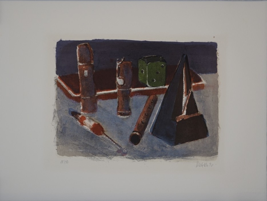 Galerie Bl.10 Stilleben mit MetronomMappe: Metzkes H. Homage á KURT SCHWAENFarblithografie, 24,0x33,0 39,0x52,0 cm, 10/50 1990Metzkes Harald