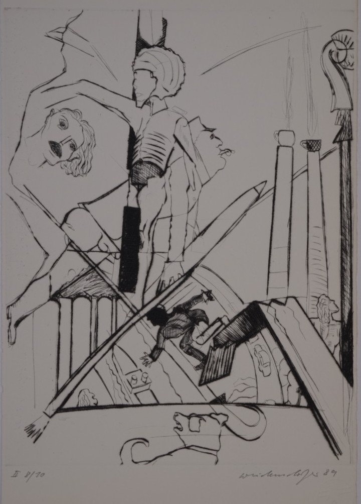 Galerie Bl.1 o.T.Mappe: Obergrabenpresse Nr.5 Weidensdorfer C. Radierung, 32,2x24,5 38,0x25,0 cm, II 8/10 1989Weidensdorfer Claus