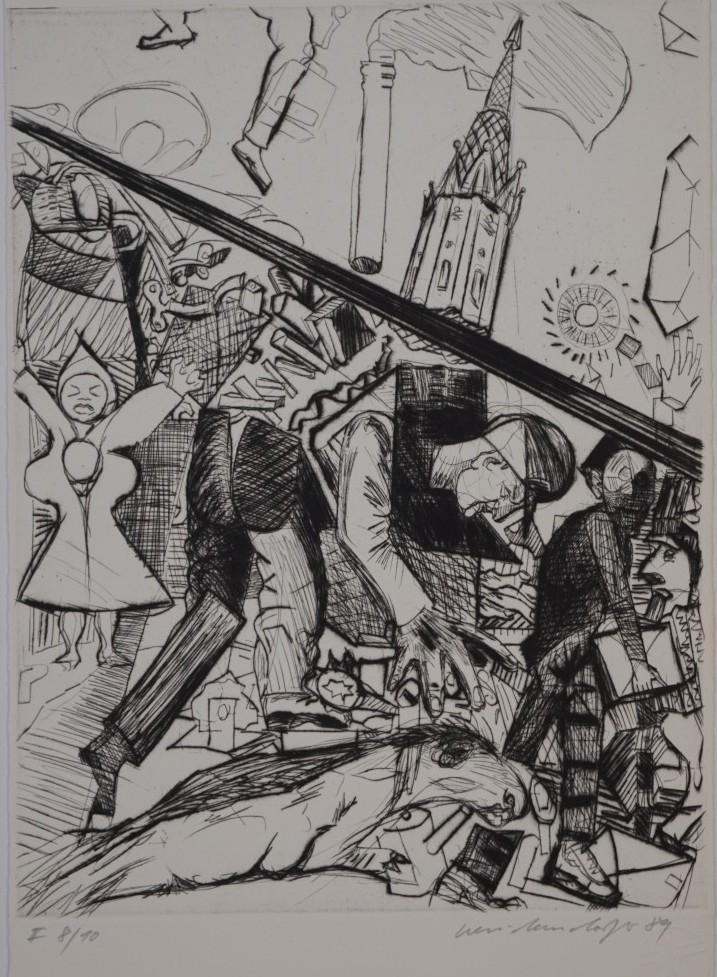 Galerie Bl.4 o.T.Mappe: Obergrabenpresse Nr.5 Weidensdorfer C. Radierung, 32,4x24,5 38,0 25,0 cm, II 8/10 1989Weidensdorfer Claus