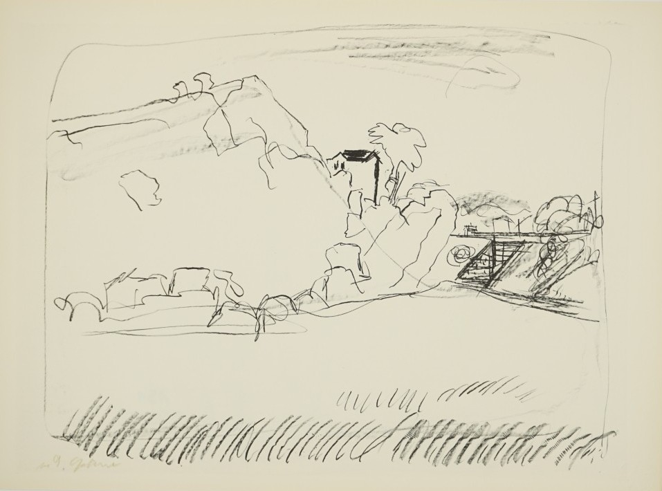 Galerie Bl.9 Hinter der HenneMappe: Goltzsche D. "Weintal Unstrut"Zinklithografie, 33,0x43,0 36,0x48,8 cm, 1-36 1974/75Goltzsche Dieter