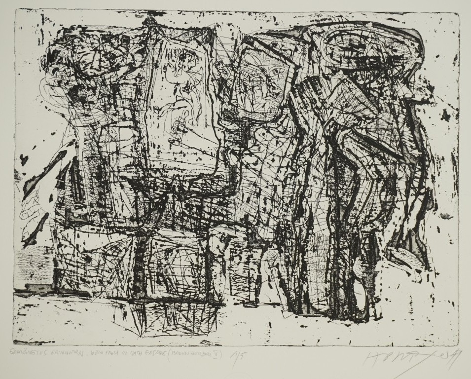 Galerie GEDRÄNGTES ERINNERN. WEIN FROH IM NACH GESANG (Bodenwerder V)Kaltnadelradierung, 29,7x39,3 39,5x53,8 cm, 1/5 2019Meyer Horst Peter